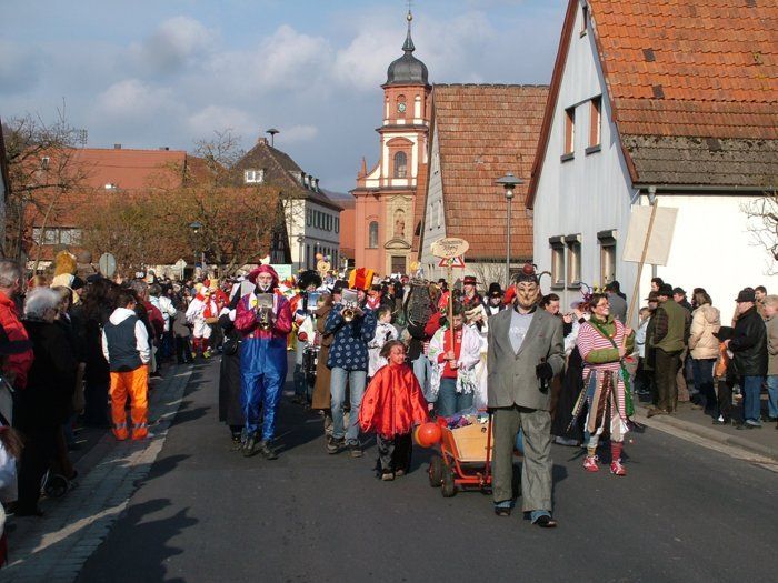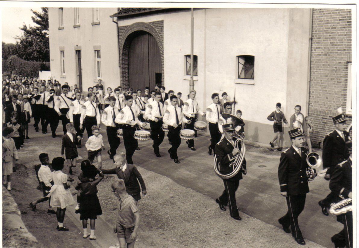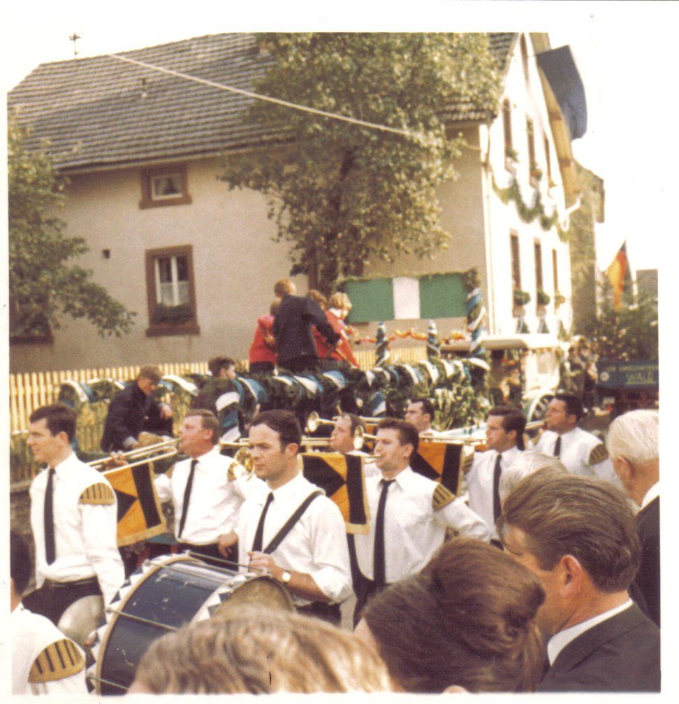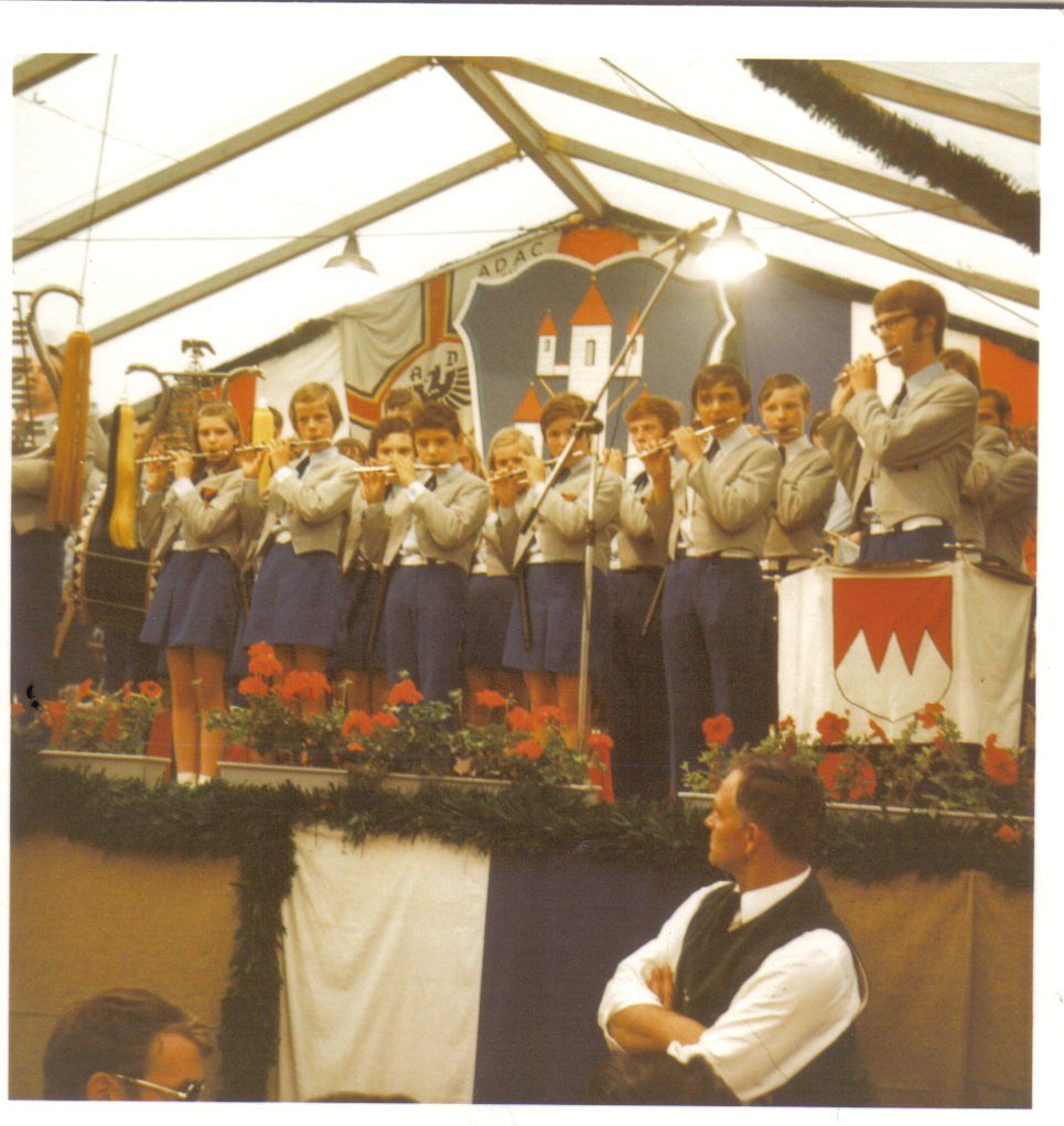 Ab 1959 begleitete man das jährliche Transportfliegertreffen in Lohr musikalisch, u.a. mit dem frühmorgendlichen Weckruf. Im Laufe der Jahre wurden 2 Lyren und schicke Uniformen angeschafft. Blaue Hosen bzw. Röckchen, graue Jacken mit Kolpingabzeichen, blaue Hemd mit Schleife und weiße Turnschuhe. Aus der kleinen Schar entwickelte sich ein stattlicher Zug, damals mit einer Spielstärke von ca. 50 Musizierenden. Es wurde zwischenzeitlich in einer Tüncherwerkstatt beim Franze Jupp oder in der Schreinerei beim Kunkels Walter geprobt. Als Musiklehrer fungierten Herr Bartoschek und später Herr Reichel.