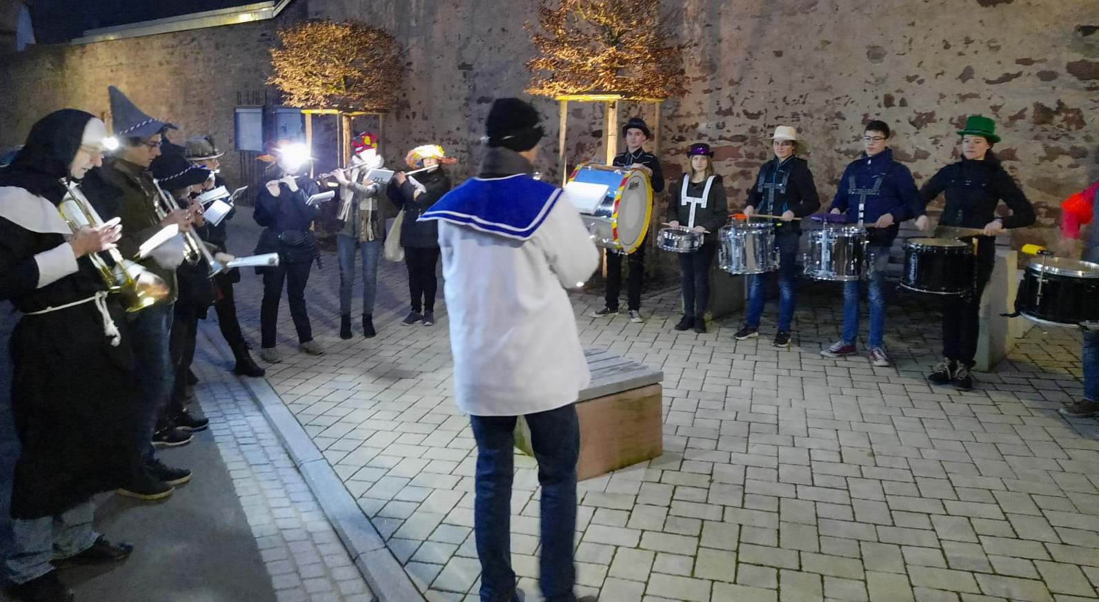 Kurz nach 18:00 Uhr maschieren wir zusammen mit einer Truppe feierwütiger Neuschter vom Dorfplatz über den Steg nach Erlach bis ins ECV-Heim.