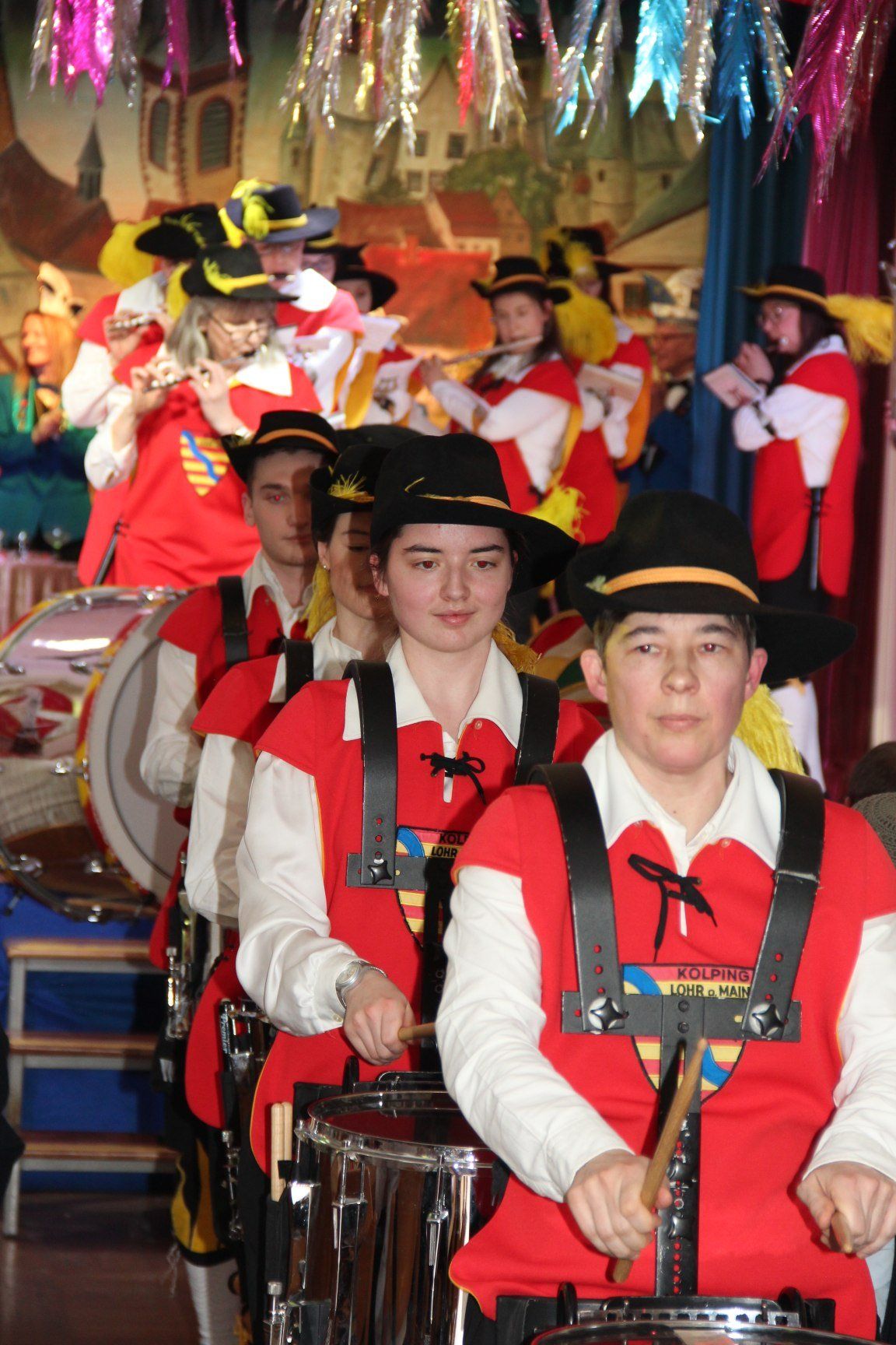 Am Samstag den 19.02.2022 war es wieder soweit, der Spielmannzug der Kolpingsfamilie Lohr warf sich, zum ersten Mal seit zwei Jahre in einer kleinen Besetzung, in die traditionelle Landsknechtsuniform und marschierte durch die Lohrer Altstadt. Auf dem Lohrer Schlossplatz gab es bei strahlendem Sonnenschein ein kleines Standkonzert. Die Karnevalsklänge lockten spontan viele Passanten an, man hörte von links und rechts die Narrenrufe „Helau“ . Die Leute klatschen und schunkelten. Die Stimmung bei uns Musikern und den Passanten war großartig.